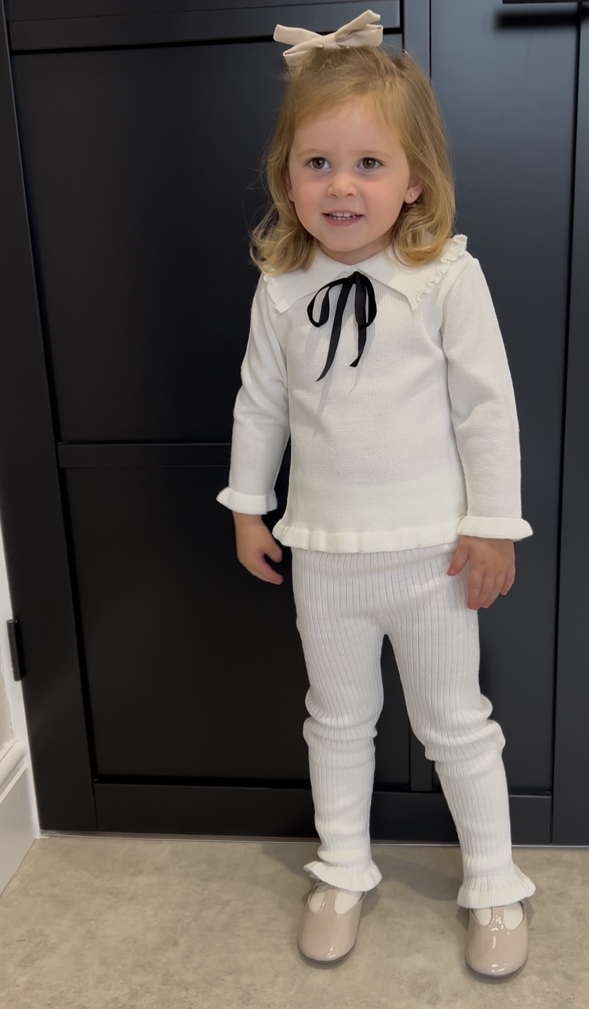 Granlei Cream Shimmer Loungeset with Black Tie Collar & Flare Leggings